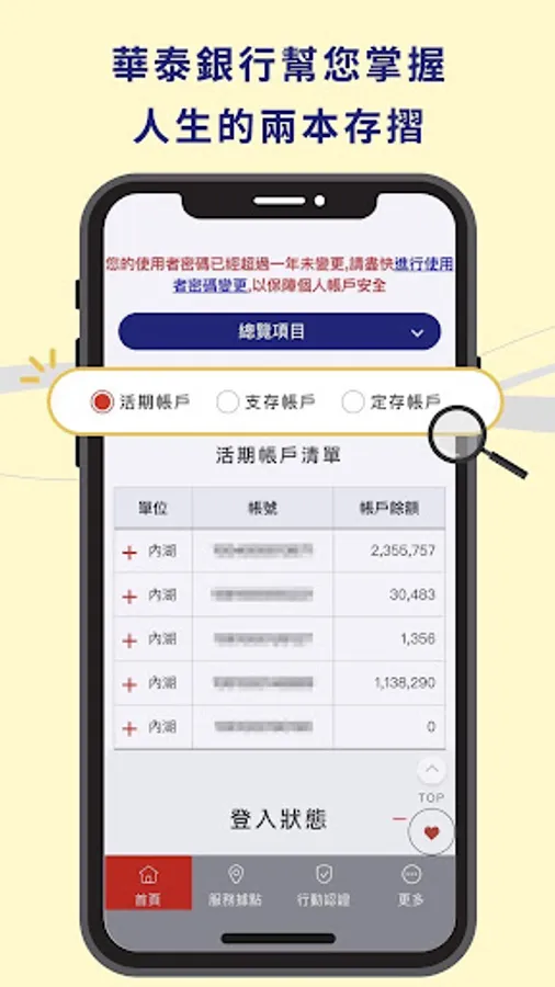 ※ Account overview: Taiwan dollars, foreign currencies, funds, credit cards, loans, structured commodities, total net worth.