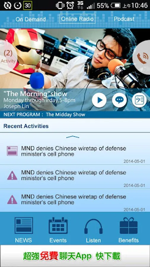 Just Install the ICRT App, and you get up-to-the-minute Taiwan news in English.