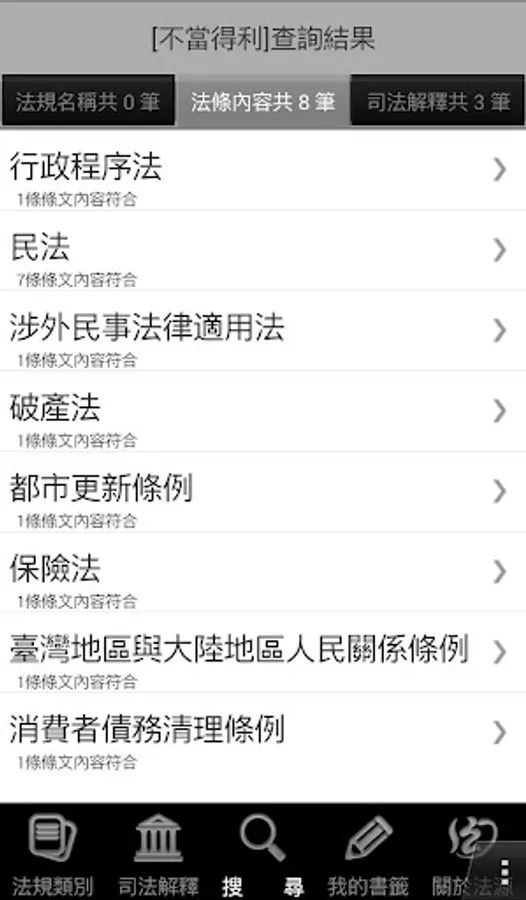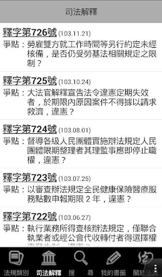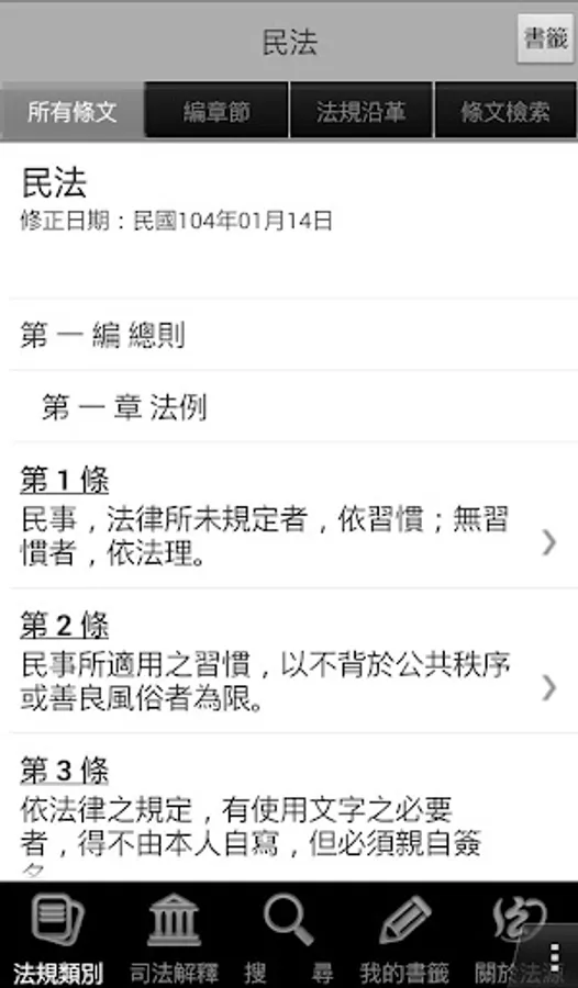 二、「法源法典」基礎六法版,係從「法源法律網」(http://www.lawbank.com.tw)1,200餘萬筆資料庫中,精選重要常用法規及全部大法官解釋,提供使用者於行動裝置上查詢資料。