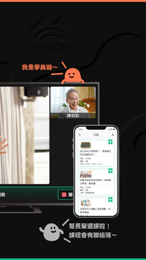 [MABOW CLUB Distance Learning] Students can freely choose to use "TV" or "tablet" to take the class. You can choose according to the familiarity of the elders in the family with 3C. When it is not convenient to go out, the elders can use their brains with the online lecturer at home, do some handicrafts to strengthen hand-eye coordination, or follow the exercise to stretch to maintain good health. They can also meet other classmates who are in class together, maintain social connections, and be happy every day!