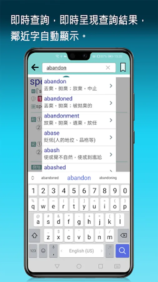 3. Real-time query, real-time display of query results, and automatic display of adjacent words.