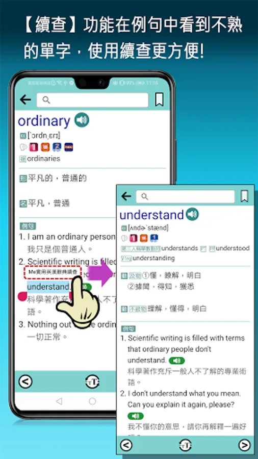 2. The continued search function, you can see unfamiliar words in the example sentences, it is more convenient to use the continued search.