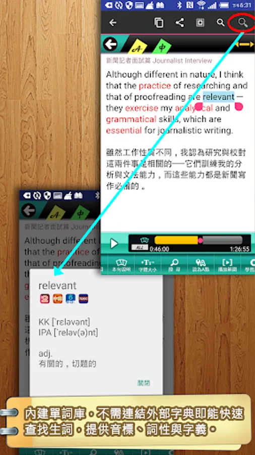 ● Bookmark function, mark the content that needs to be reviewed or used, and play the exercises repeatedly