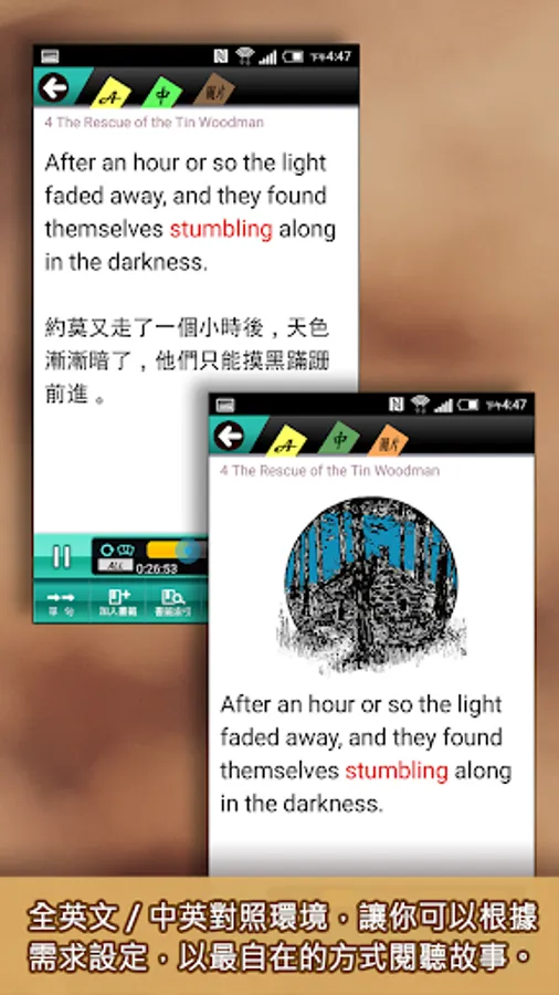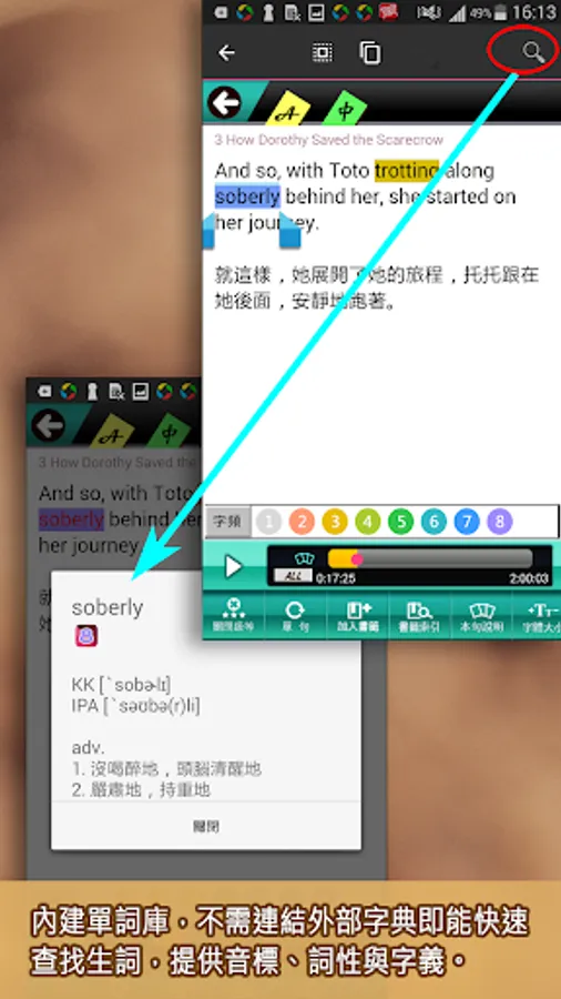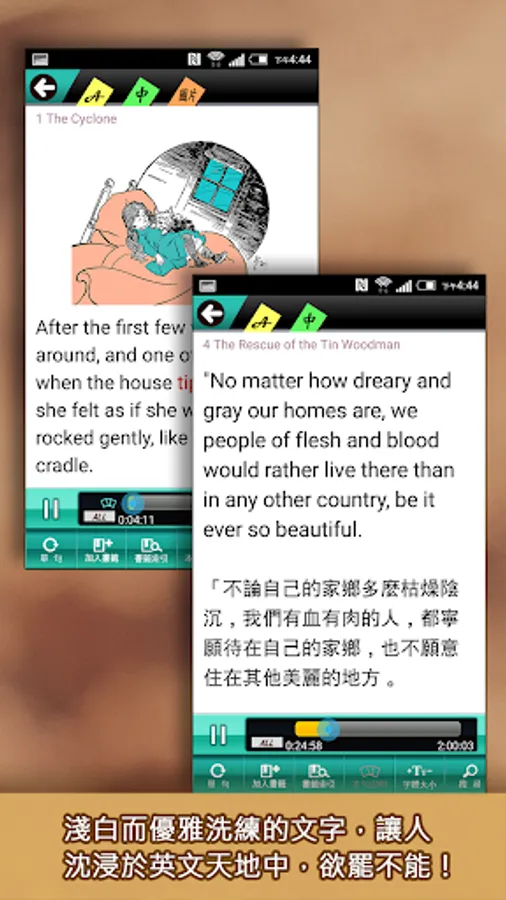 4. Full-text English/Chinese-English bilingual: A full-English or Chinese-English bilingual learning environment can be set so that you can read together and fully understand the meaning of the text.