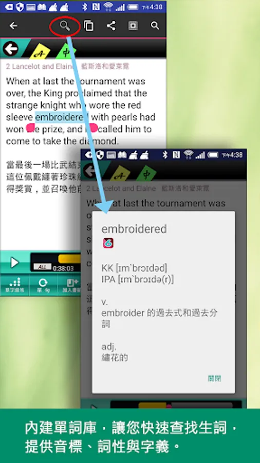 5. The function of checking the meaning of a word, a built-in word database, providing phonetic symbols, part of speech, and meaning for the words inquired, to help quickly understand the content of the article.