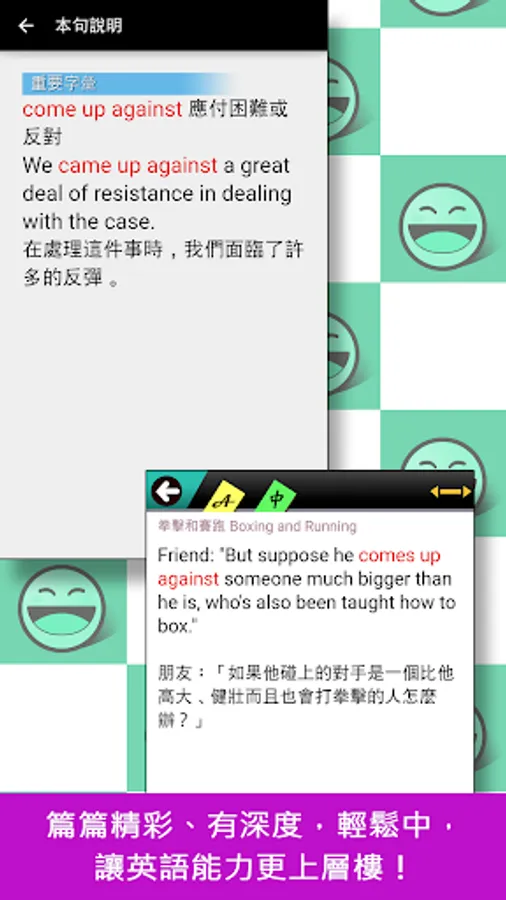 1. 【閱讀訓練】中英文對照或隱藏模式,全英/中英對照學習。