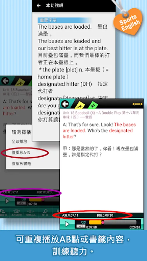 2. 【聽力訓練】自動或循環朗讀、複讀範圍與次數均可自訂,訓練聽力超有感。