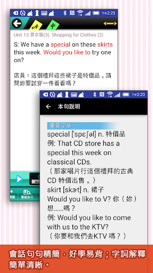 When traveling abroad, do you often face the dilemma of not being good at communicating in English when shopping in a store or renting things in a rental shop? This product is specially designed for overseas shoppers, even local store clerk, when facing foreign tourists shopping, they need to use shopping English, the written content, and the smooth user interface on the mobile phone, so that you can quickly find what you need temporarily In a word, it is also a good textbook for self-study English.