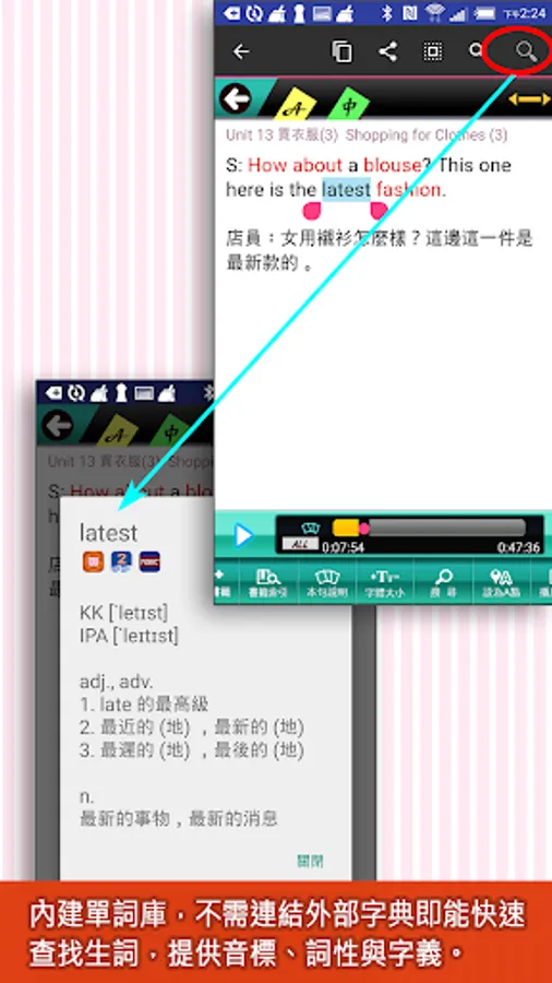 Do you want to better manage the English learning books you buy, and enjoy systematic learning records to improve learning efficiency? Welcome to try the "Language Navigator" (available in this App: "Shopping English Lite"), "Mebooks English Learning Hall" App.