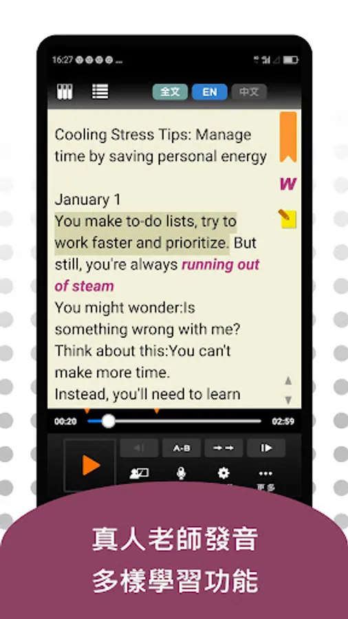 3. Pronunciation by a professional English teacher in the original voice, you can learn sentence by sentence with the sound and text simultaneously.