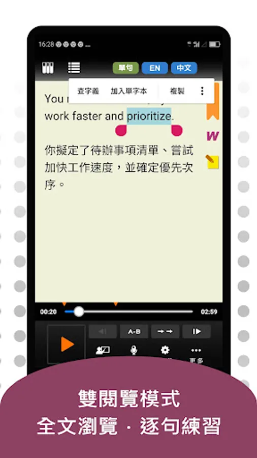 5. Automatic reading: You can lock a single sentence or a selected (A.B point) range to read aloud cyclically.