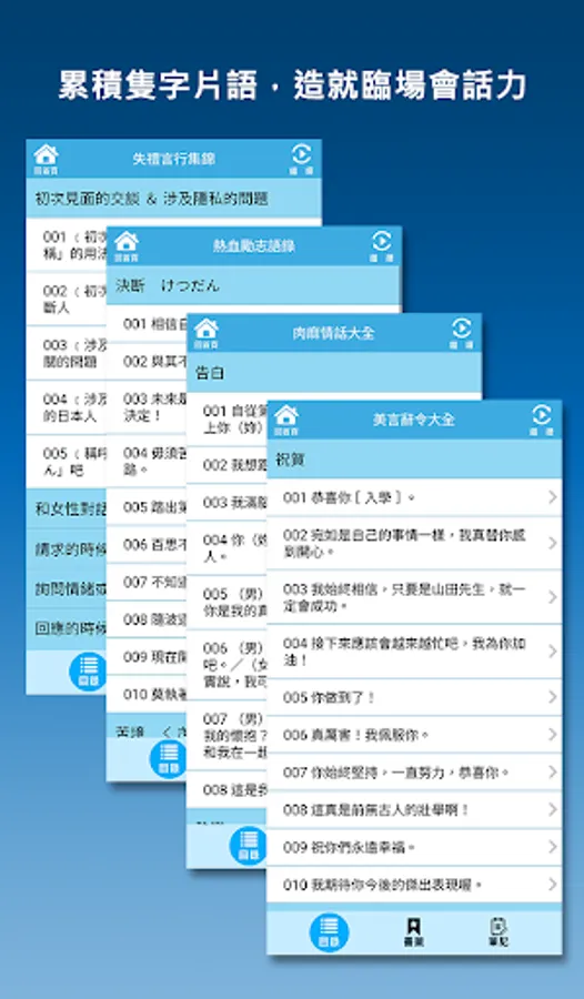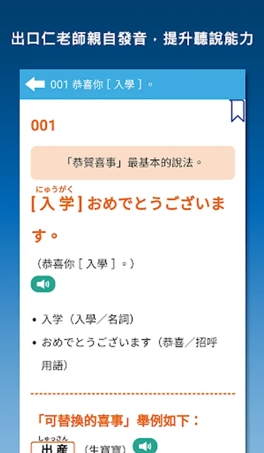 At the moment of watching a drama, since you can memorize the protagonist’s signature lines; the moments of waiting for someone on the ride, and making good use of trivial time, you can definitely accumulate Japanese "words" and create real-life conversational skills. You can listen to the pronunciation of Mr. Ou Jen at any time, and the situation in Japanese is flowing in your ears. The sentences are concise, not long, and you can listen and read sentence by sentence, without burden, and the results will be even more rewarding!