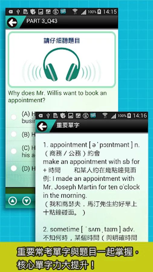 TOEIC® is a registered trademark of Educational Testing Service (ETS) in the United States and other countries. This app is not approved or endorsed by ETS.
