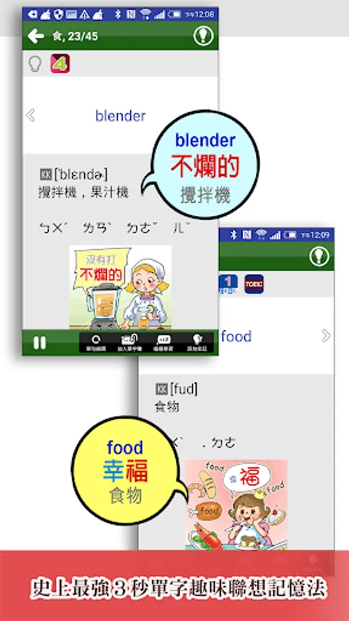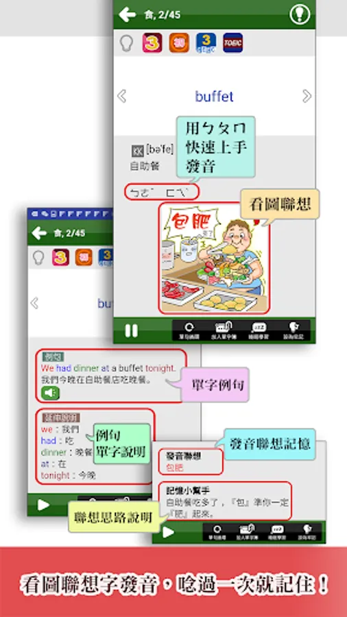 1. Words: including English words, KK phonetic symbols and phonetic symbols, so that you are familiar with the spelling and pronunciation of words.