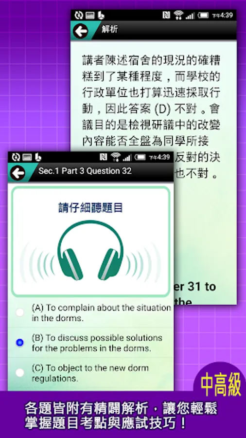 ● 逐題解析、中譯,可藉由查閱精闢分析後,再次進行下一回的模擬,以了解自身進步概況。