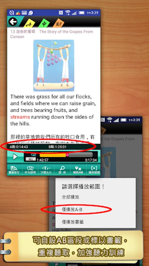 ● 中英文顯示或隱藏模式,可設定全英文/中英文對照學習環境