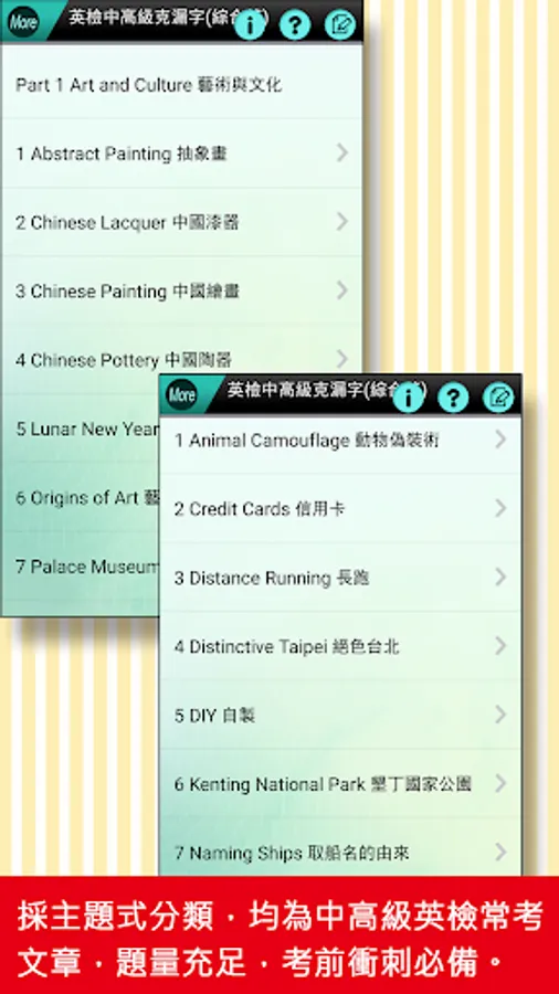 ● Subject-based classification, select the most frequently tested articles in the national English test, and be familiar with the test method of missing words.
