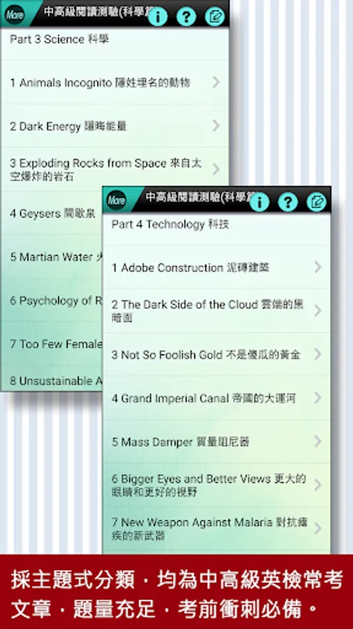 Do you want to better manage the English learning books you buy, and enjoy systematic learning records to improve learning efficiency? Welcome to try the "Language Navigator" (available in this app: "National English Test Intermediate and Advanced-Reading Test (Science)"), "Mebooks English Learning Center" App.