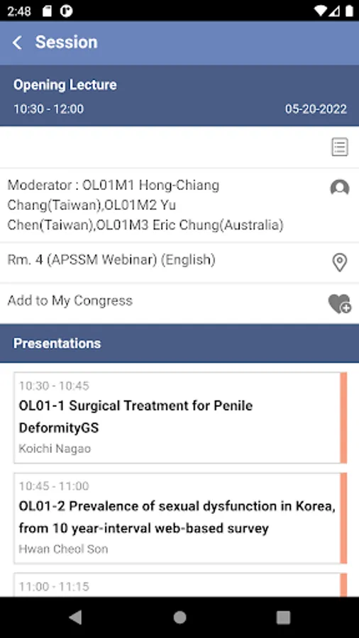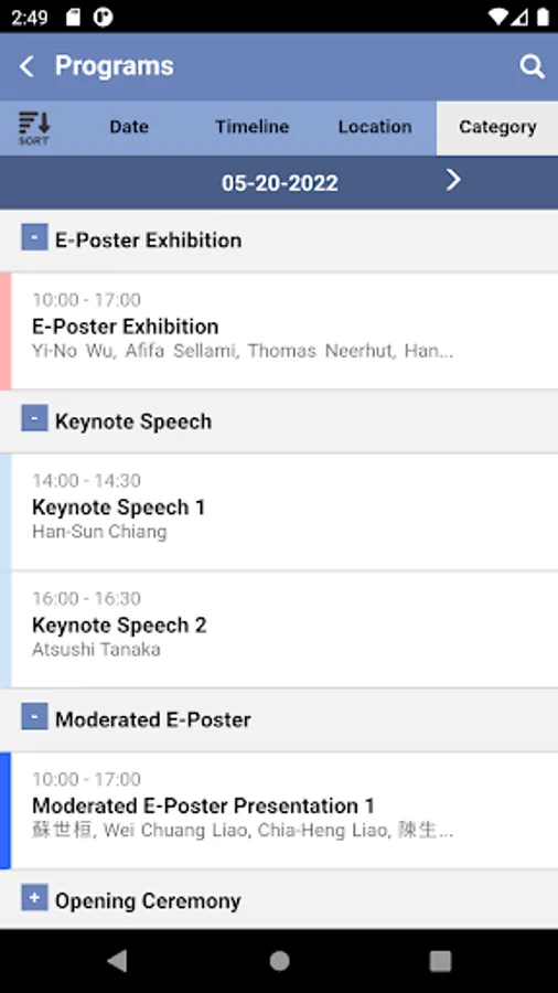 The conference information provided by this program is rich, and users can browse in different modes such as date, time axis, category and location; it can be used to replace the conference manual.