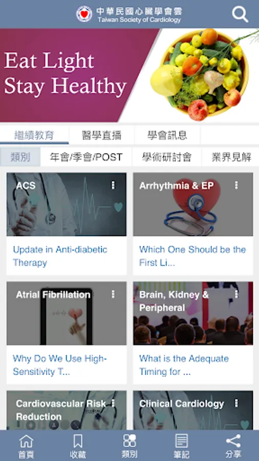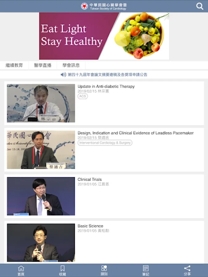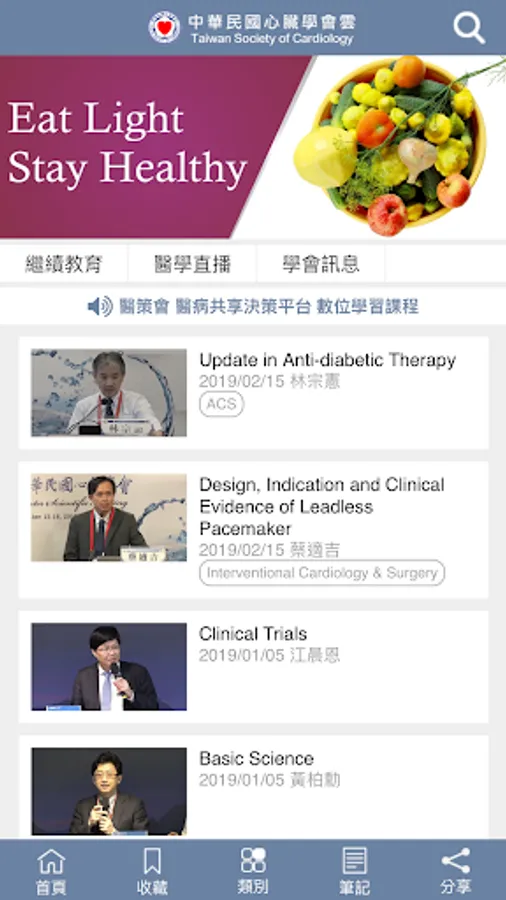 心臟血管的相關知識日新月異,各種新器材新技術也一直推陳出新,心臟學會和國內業界為增進會員吸收醫學新知,經常舉辦學術活動和各種教育訓練。為了更普及學會所舉辦的學術活動,讓更多的會員可以參與,特別建置中華民國心臟學會雲(TSOC APP),讓各位會員能多一個便捷的選擇,獲取醫學新知。