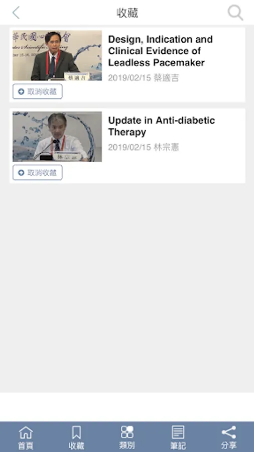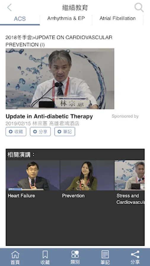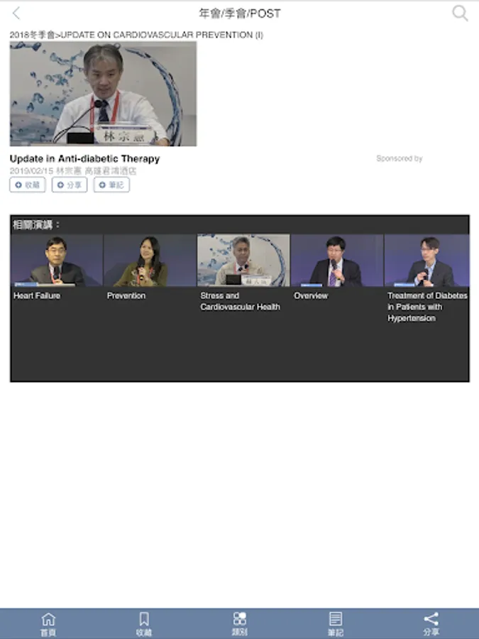 3、 分享:可將特定演講透過email/FB/Line等工具,與同好分享