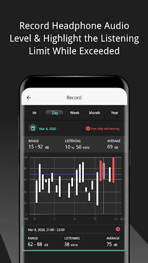 Base on the Global Hearing Health Awareness promoted by WHO, the App will monitor and calculate the daily maximum listening time limit.