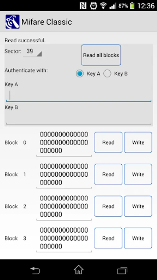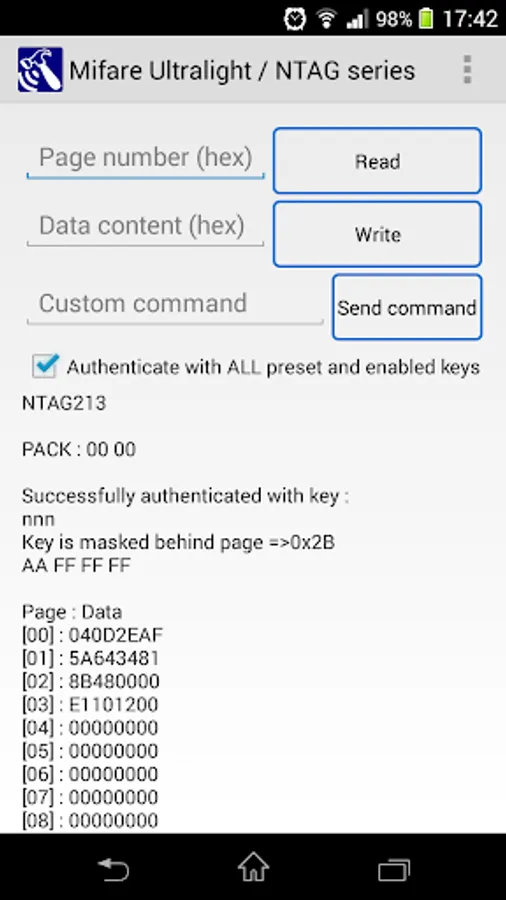 Note: For Mifare Classic tags, you need to know the Key(s) to access the data in each respective sector, otherwise the default key would be assumed. For more information, please look up NXP's Mifare Classic in the internet.