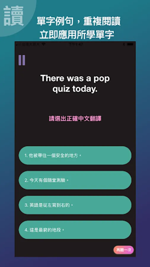 In addition to the free seven-minute daily learning new word function, we also offer free unlimited time [English Spelling King], [Sentence Champion List], and multi-functional [single word set], allowing you to review single words, sentence patterns at any time. , and immersive listening training.