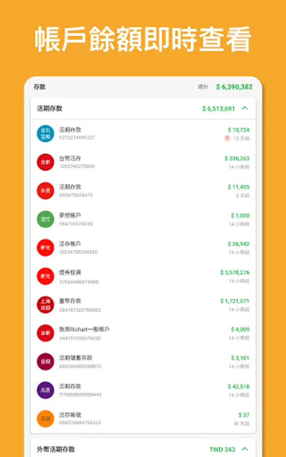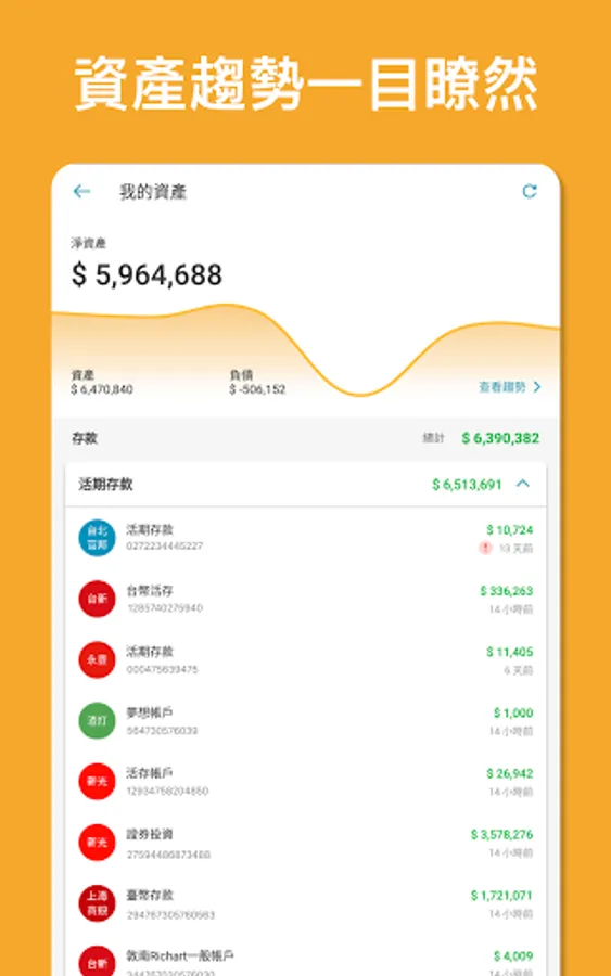 One interface integrates 34 bank accounts of CITIC, Cathay Pacific, Taishin, Yushan, and Taipei Fubon. It can also synchronize funds, cryptocurrencies, and overseas securities to manage all assets.