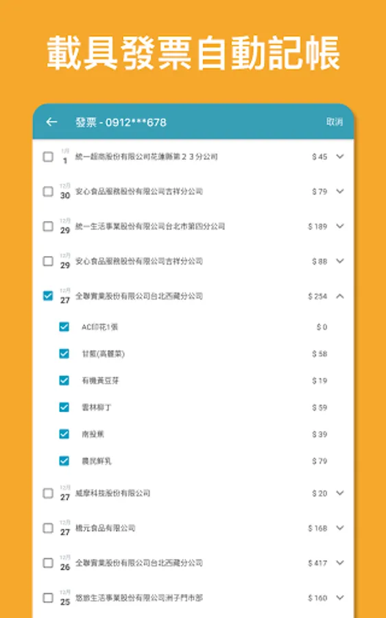 Import invoices for accounting or individual item accounting, no need to use your brain to recall what money was spent during the day.