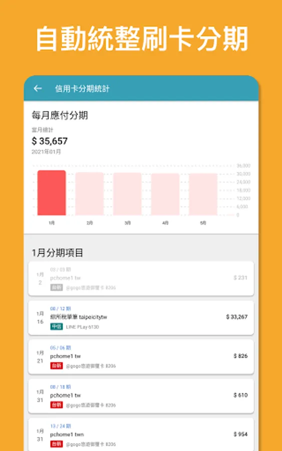 Card fees are scattered in various banks, afraid of maxing out? One interface to view each installment and grasp the consumption status.