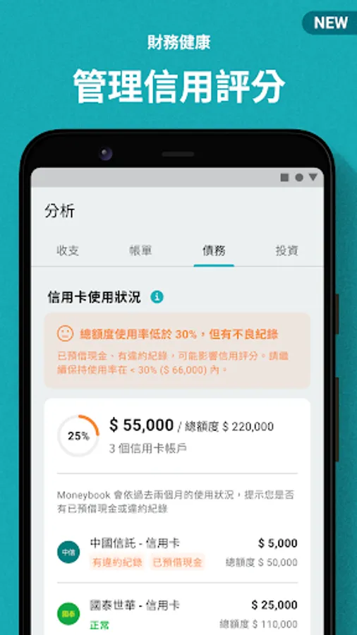 Beyond the budget, debt, and credit score optimization suggestions of general accounting apps, it can also try to calculate the most suitable credit plan, providing you with the next step in financial management and moving towards a free life.
