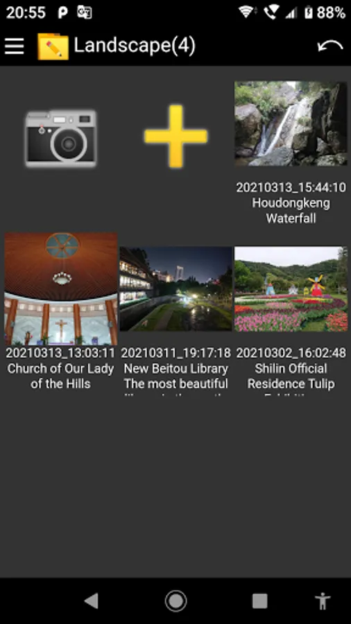 You can try Photo Notes. This is not a camera, nor is it a mere photo album, but a useful tool to help you categorize selected photos.