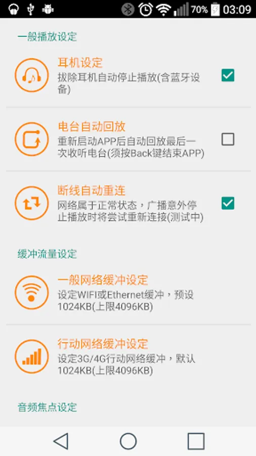 2. Listen to the radio using WiFi, please check the "Settings" -> "WiFi" -> "Advanced" menu option -> "Keep Wi-Fi on during sleep" -> Set "Always" item, it does not It will automatically stop broadcasting for some time