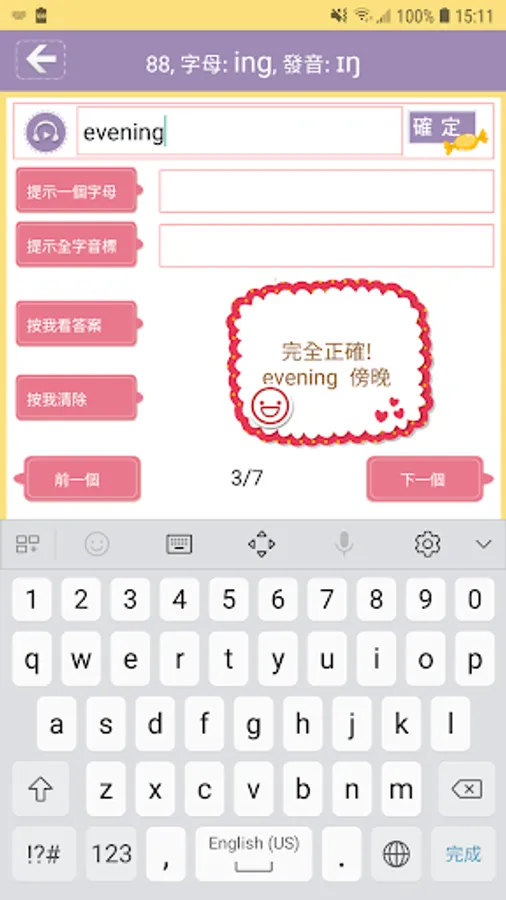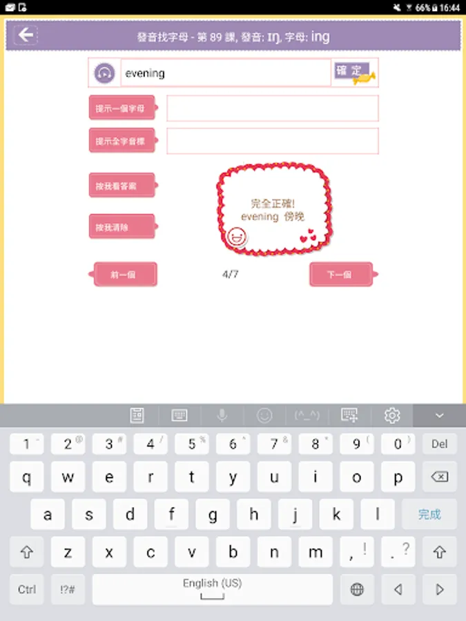 聽發音,拼寫正確的單字,可練習聽力和提升單字記憶能力。