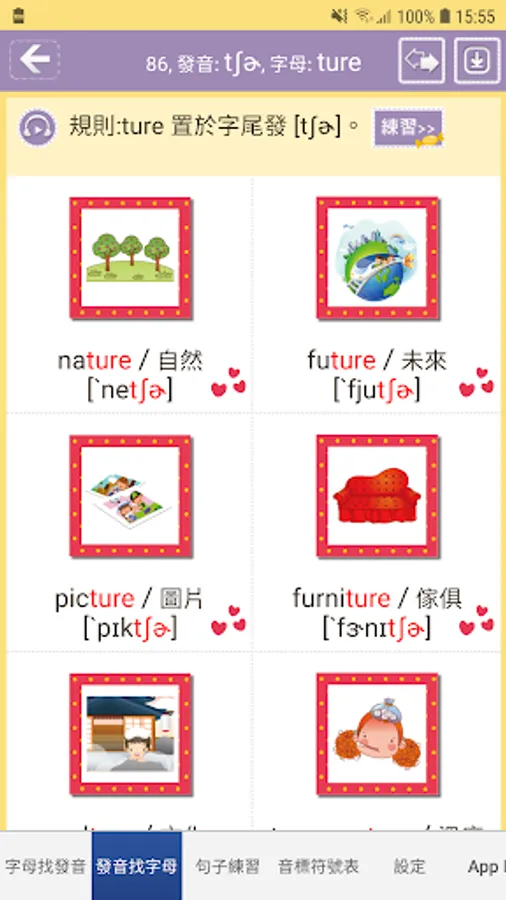 全部單字和句子練習均搭配精美圖像,讓學習更輕鬆有趣。