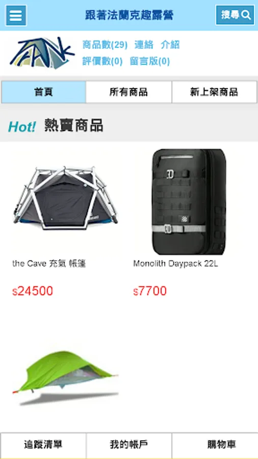 Frank Fun Camping is a professional outdoor products in Europe and America agent, the agent in Germany Heimplanet, UK Tentsile full range of goods, and in the province Jie To Buy currently online shop and enjoy first-hand information and merchandise discounts, Download, Buy Now immediately enjoy the good things of experience abroad.