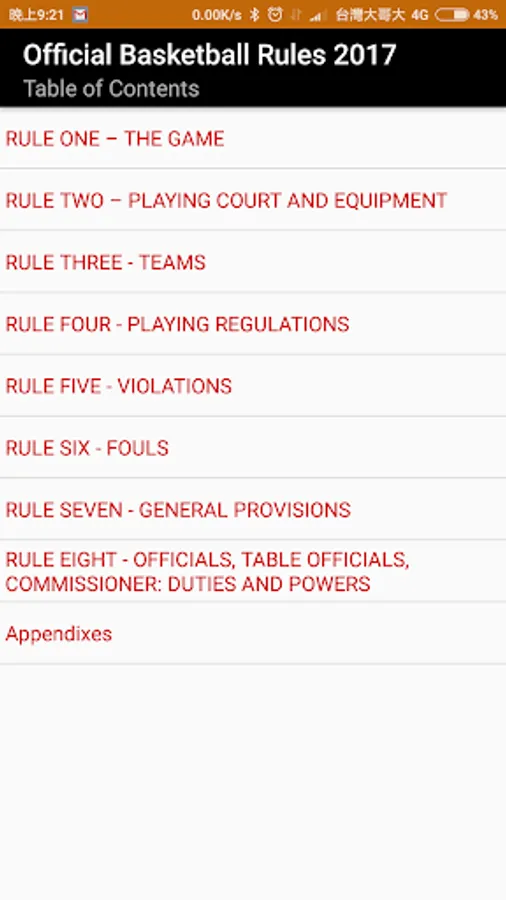 Integration of basketball rules, rules of basketball-related decisions and the actual quizzes app