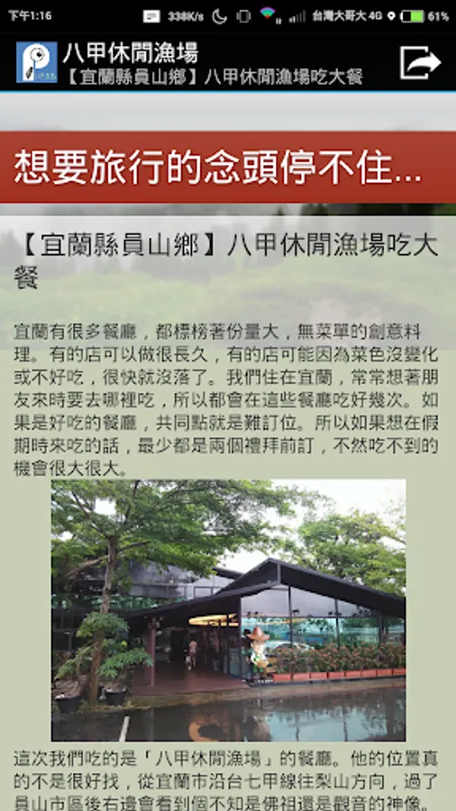 Taiwanese love to write travel notes, which is a great treasure trove of resources. This app helps players collect travel notes for each highly-rated attraction, allowing players to understand the actual situation of each attraction in advance through others' travel notes, and then arrange each trip.