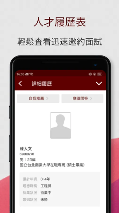"1111 Talent Search App" is an all-round talent search app specially designed and built by 1111 Job Bank for enterprises. You can check talent trends at any time, receive talent application notifications in real time, and help companies lock first-rate talents easily!