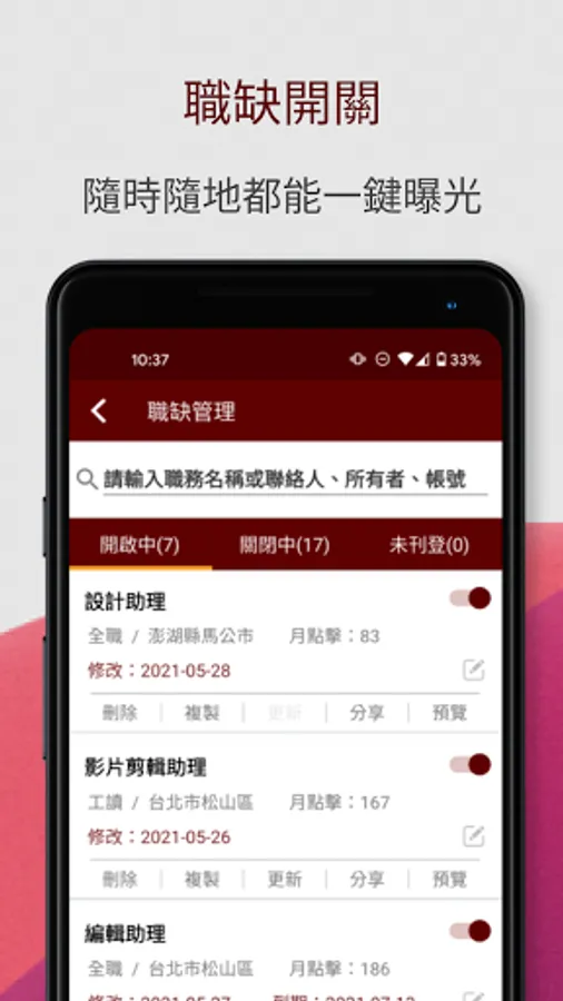 8. Job vacancy management: You can edit job vacancies on your mobile phone, and adjust the recruitment content according to your needs at any time.