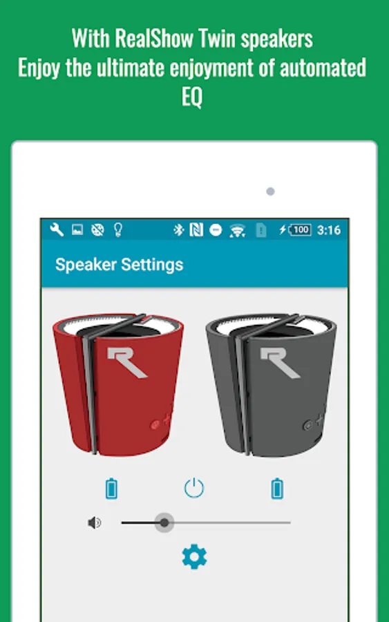 + Speaker Settings: Control volume and display battery level of speakers.