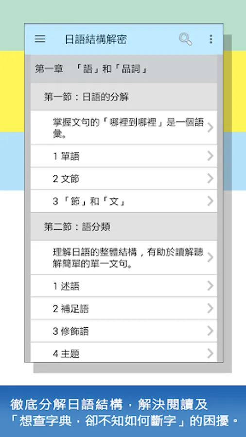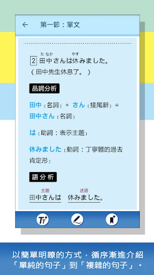 "Japanese Structure Decipherment" puts equal emphasis on "theory + examples + diagrams", and hopes that through easy-to-understand explanations, everyone can understand the Japanese structure rules in "simple sentences" or "complex sentences" and understand "Japanese". What kind of language is it?" After understanding the "reasons" and "rules", and seeing similar content, you can draw inferences from one another, accumulate and expand learning effectiveness; really make yourself "learn more"!