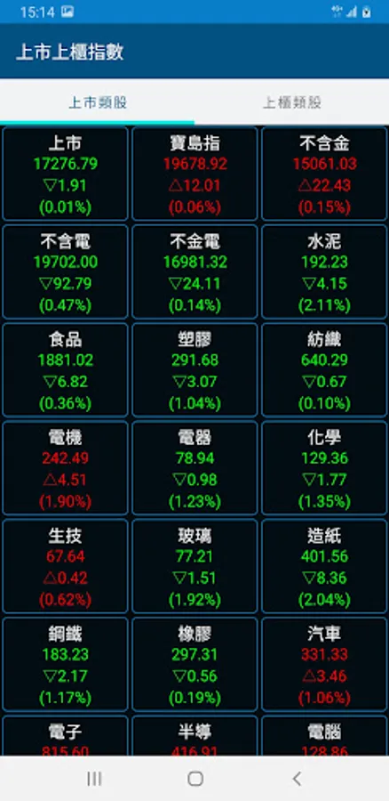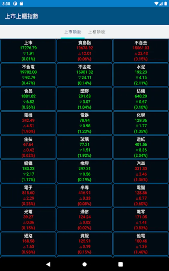 6. Provide the quotation of each index listed on the OTC. Click on the industry category index to link the category and individual stock quotation. Each category index can be moved arbitrarily to move the industry index to a favorite position.