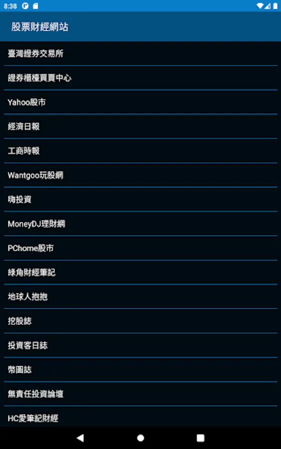 Taiwan Stock Exchange, Securities Counter Trading Center, Yahoo Stocks, Economic Daily, Business Times, Wantgoo, MoneyDJ, PChome Stocks, Green Corner Financial Notes, Human Hug, Emily, Mining Stocks , Investor Diary, Biography, Tangcai's Notes, HC Love Note Finance, Hanyu Zhuxuan, Great Poet’s Lonely Investment Notes, PG Finance Notes, Zike Use-All-round Wealth Management, Maple Leaf Data Room, Wealth Management Notes, Mai Shuren investment community website, Financial Report Dog Training Nest, and Chu Madman’s investment notes.
