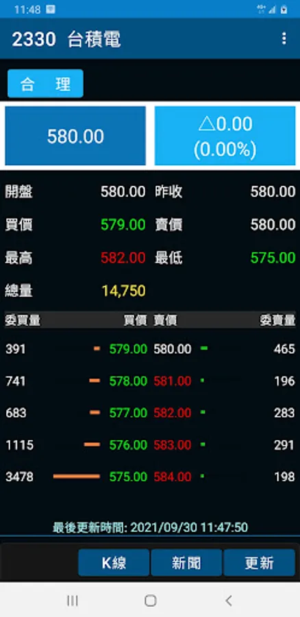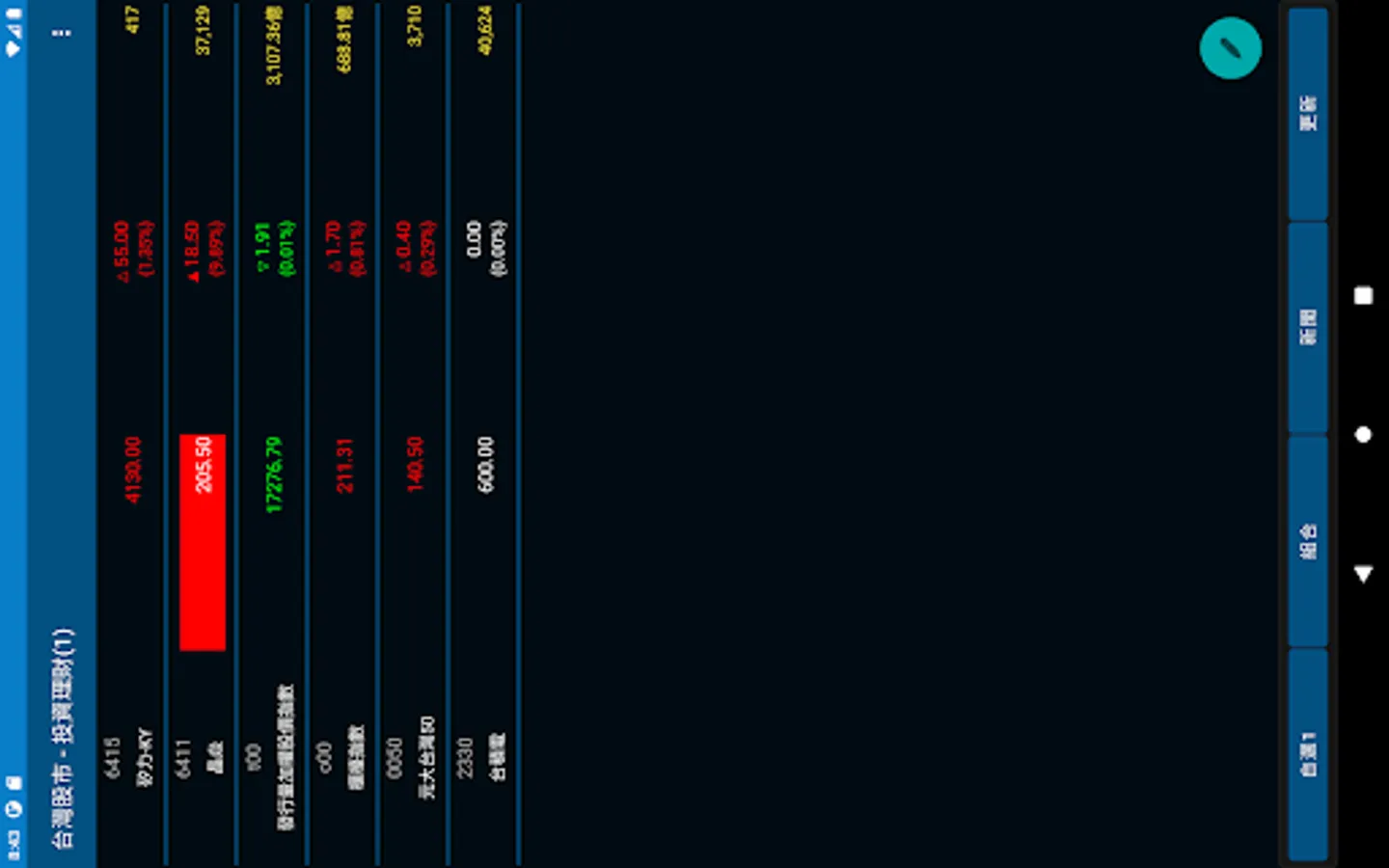 4. Real-time quotes are provided for listed stocks, ETFs and indices. The warrants section currently only supports the open, yesterday's closing price, highest, lowest, trading volume, buying price, selling price and five levels of detailed information.