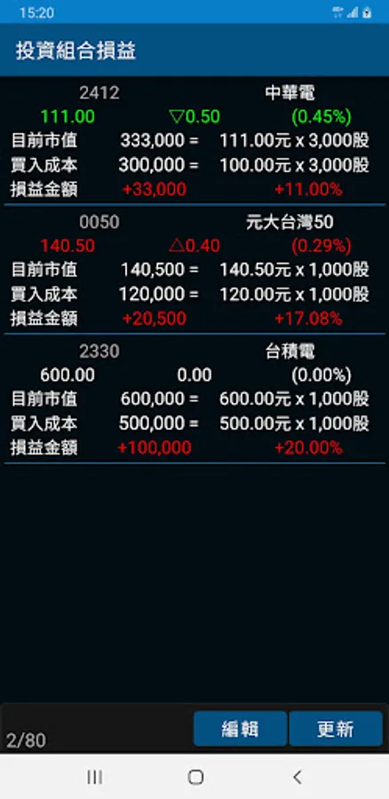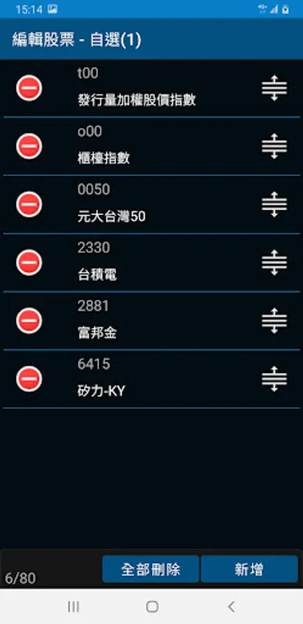 2. The list of stocks and investment portfolios can also enter the edit page to add, delete and move positions.