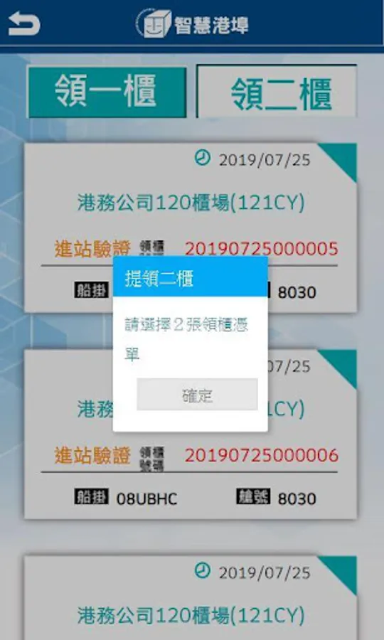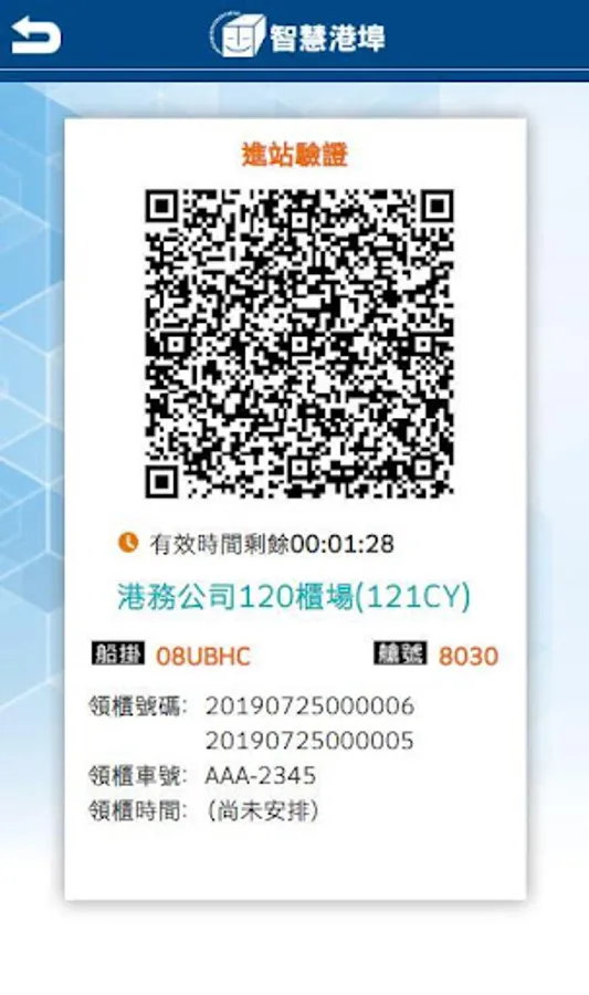 Instantly receive electronic collar vouchers and use QRCode for container withdrawal. It has yet to be managed separately from the extracted records. At present, it is only applicable to the import of heavy cabinets (CY cabinet) of No. 121 public container terminal in Kaohsiung Port.