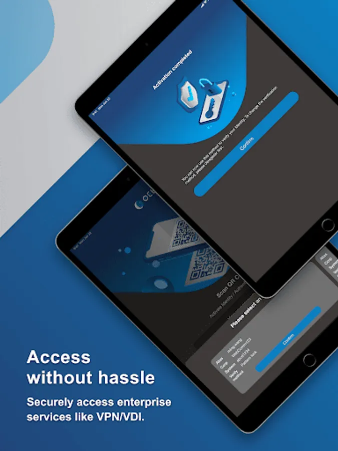 - Activate passwordless authentication by scanning a QR code or receiving a push notification.