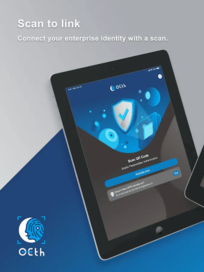The OETH App, in conjunction with the OETH Identity, simplifies strong authentication for enterprises, enhancing the passwordless SSO experience.